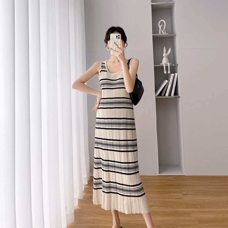 Maternity Summer 2025 New Fashionable Stretch Stripe Dress Sleeveless Vest Dress Summer Skirt Maternity Dress