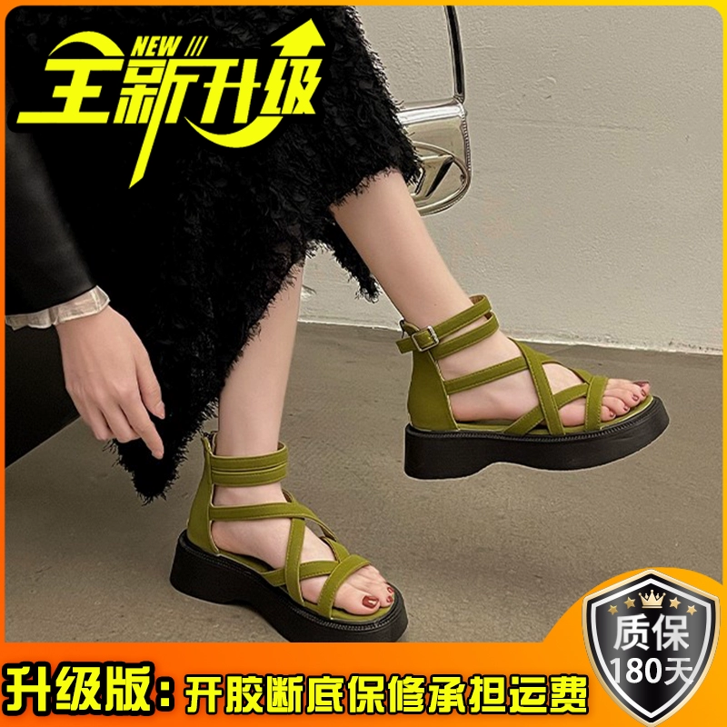Trendy tribal popular green women’s Roman sandals
