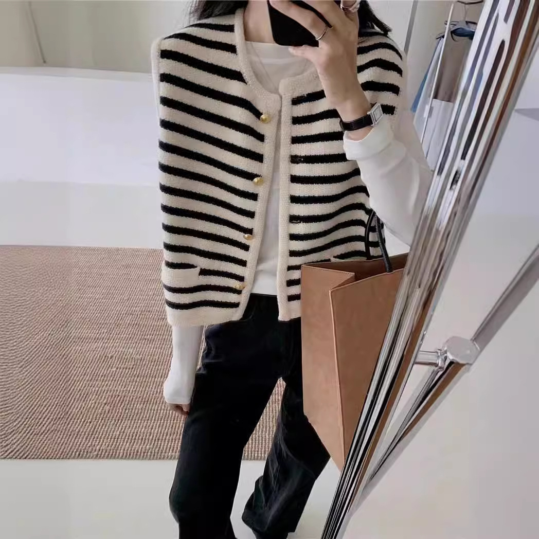 2024 spring design sense niche Western style all-match cardigan outer wear stacked top French contrast color knitted vest for women