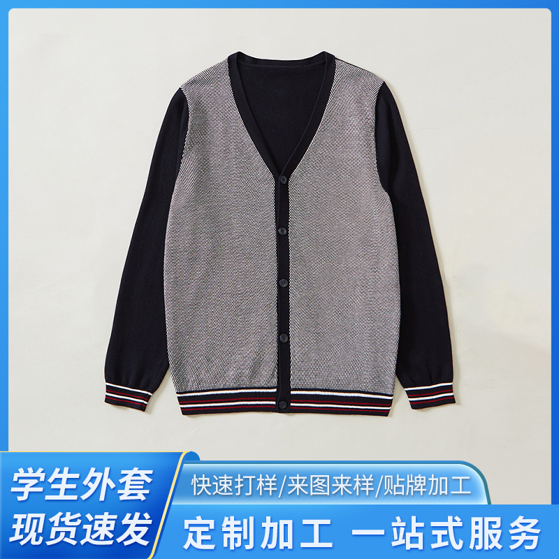 Korean Style Cotton V-Neck Sweater for Primary School Students Tibetan Blue Grey Knitted Cardigan British Style Comfortable Simple Jacket for Children