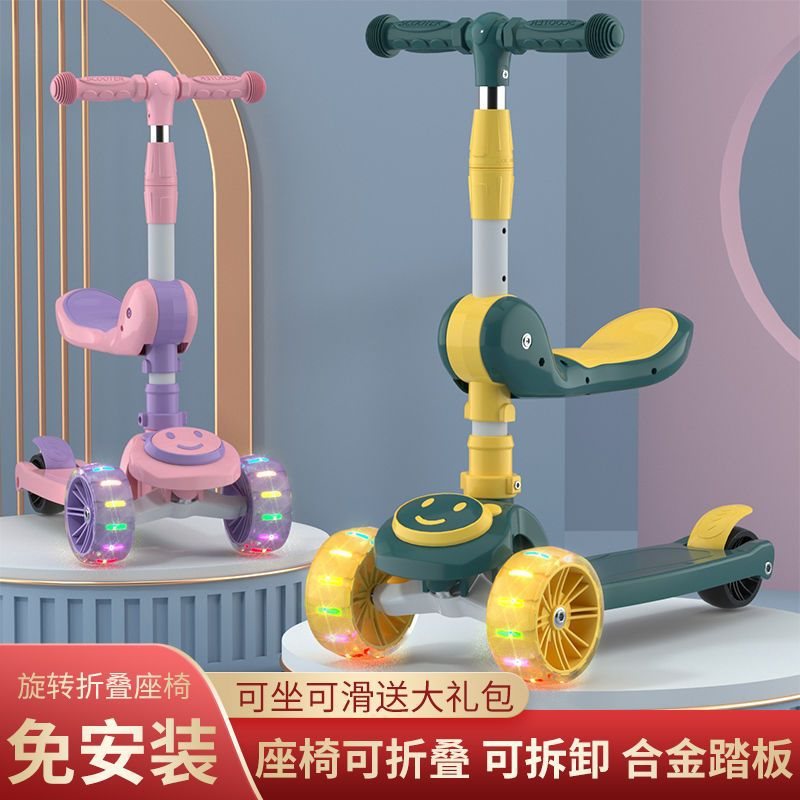 Children’s Scooter with Seat Suitable for 2-3-4 Can Sit and Slide 5-6-7 Suitable for Young Boys and Girls Children to Play Beginner