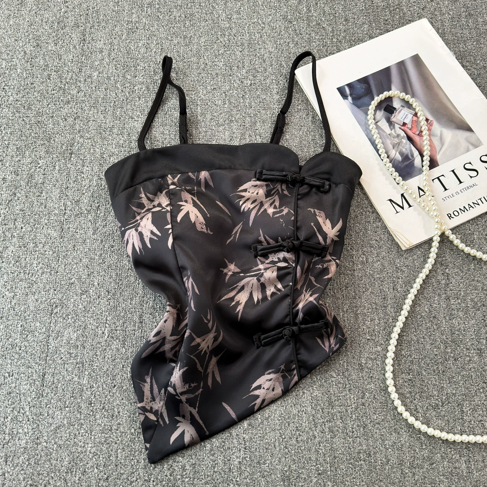 Ink painting printed Chinese style triangle suspender women’s summer silk scarf