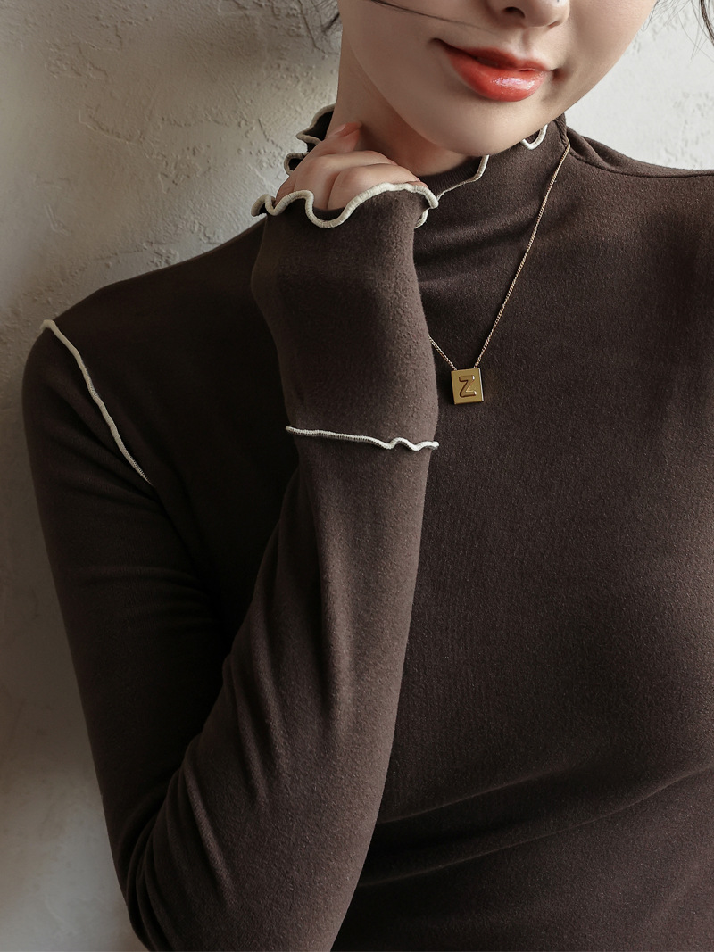 [Cashmere silk bottoming top] wooden ear half turtleneck de Velvet bottoming shirt Women’s inner wear autumn and winter long sleeve