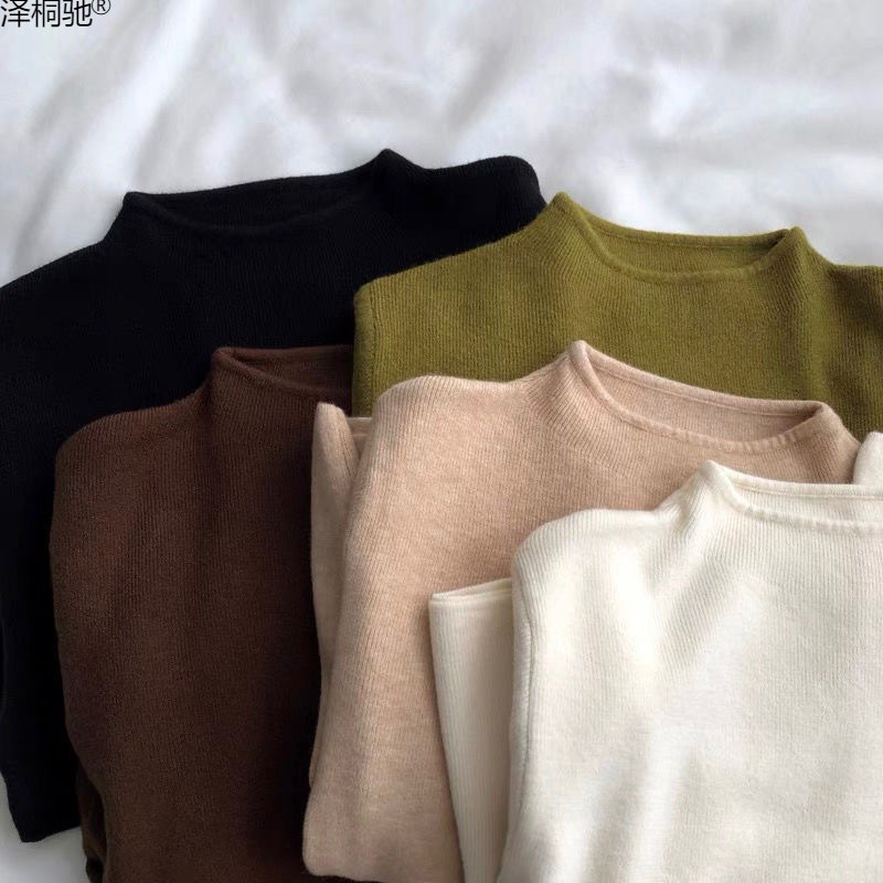 Autumn and Winter French style elegant half turtleneck wool sweater Women’s Western style cashmere bottoming sweater high-grade top