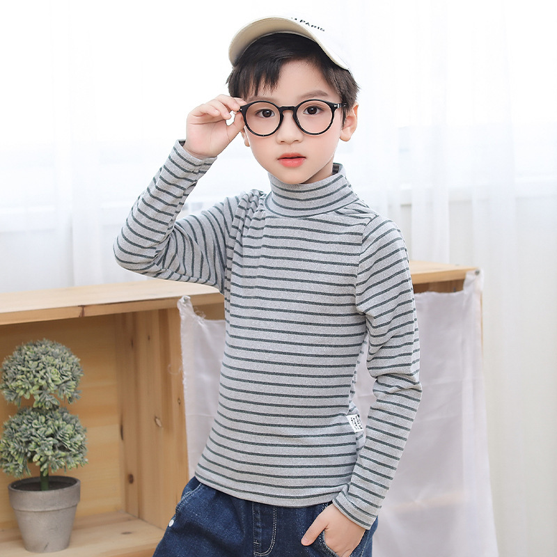 Children’s long-sleeved bottoming shirt stretch autumn clothes new boys and girls striped T-shirt de velvet mid-high collar single top children’s clothing