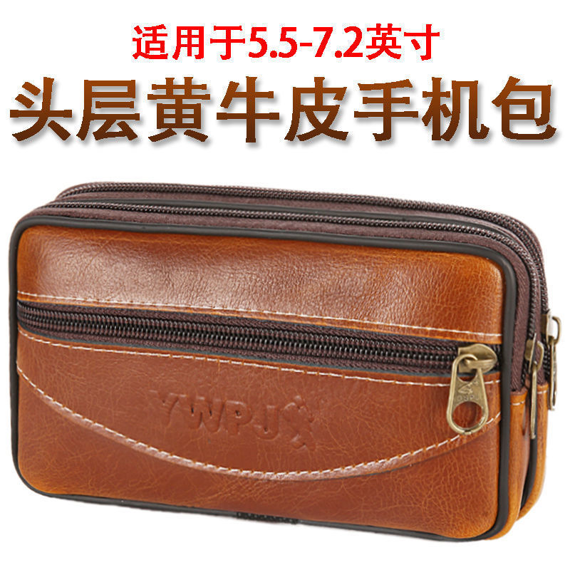 Cowhide Mobile Phone Bag Men’s Waist Bag Horizontal and Vertical Wearing Belt Hanging Waist Mobile Phone Case Men’s Bag Genuine Leather Construction Site Multifunctional Bag