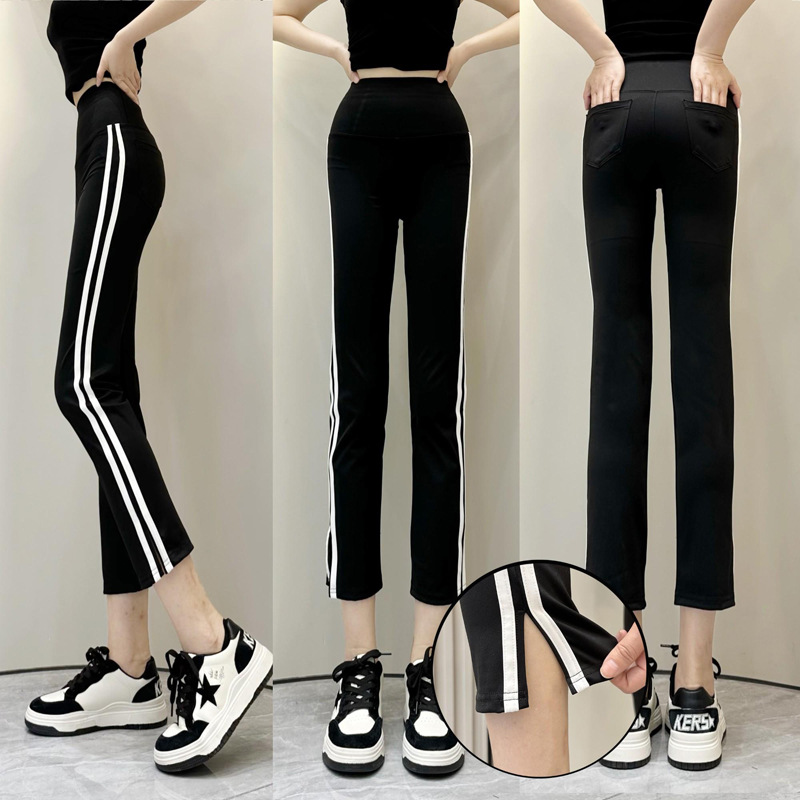 Summer Side Stripe Yoga Pants All-match Slimming Eight-point Shark Pants Split Slim-fit Outer Wear Barbie Cropped Pants Tight
