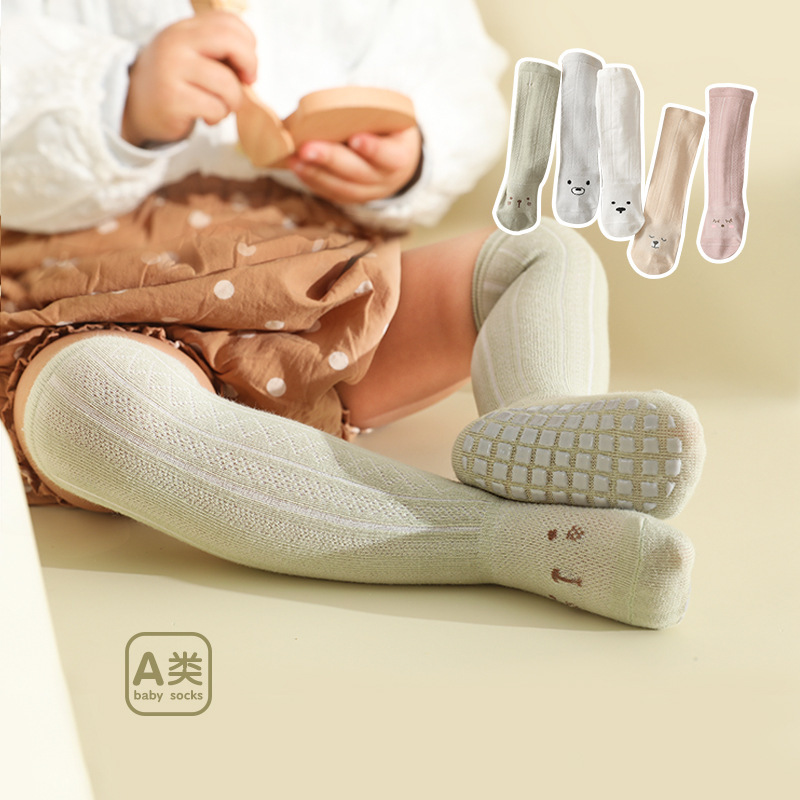 Cartoon Bear Thin Baby Stockings Summer Mesh Neonatal Anti-slip Floor Socks Baby Over-knee Anti-mosquito Socks