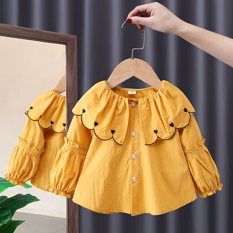 Girls’ doll shirt 2023 spring new lapel girls’ solid color white shirt baby Western style all-match top base