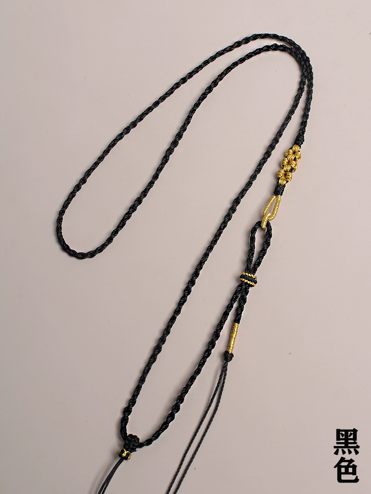 High-end gold Buddha head pendant lanyard Buddha amulet pure hand-woven rope peach blossom knot necklace rope high-end double lanyard
