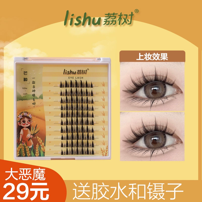 [Half Price Flash Sale] Lishu Demon False Eyelashes Super Novice Transparent Thin Stems False Eyelashes Eyelash Clusters