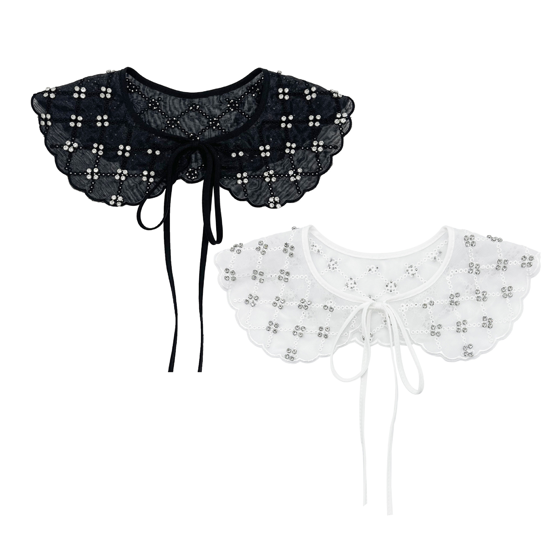 2023 hot sale new women’s clothing Black and White Hollow organza fake collar rhinestone shawl lace-up collar flower