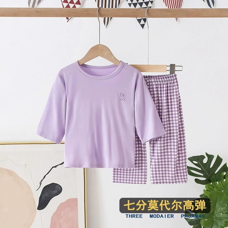 Girls’ modal pajamas summer three-quarter sleeve thin section girls’ medium and large children’s summer short-sleeved children’s home clothes summer