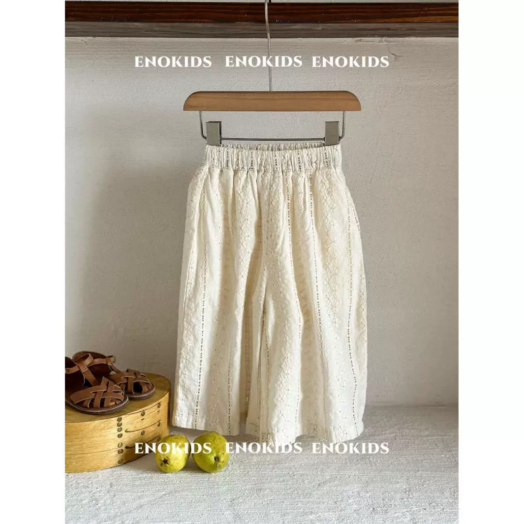 Sweet French Cotton Cotton Hollow Lace Sen wide -leg pants