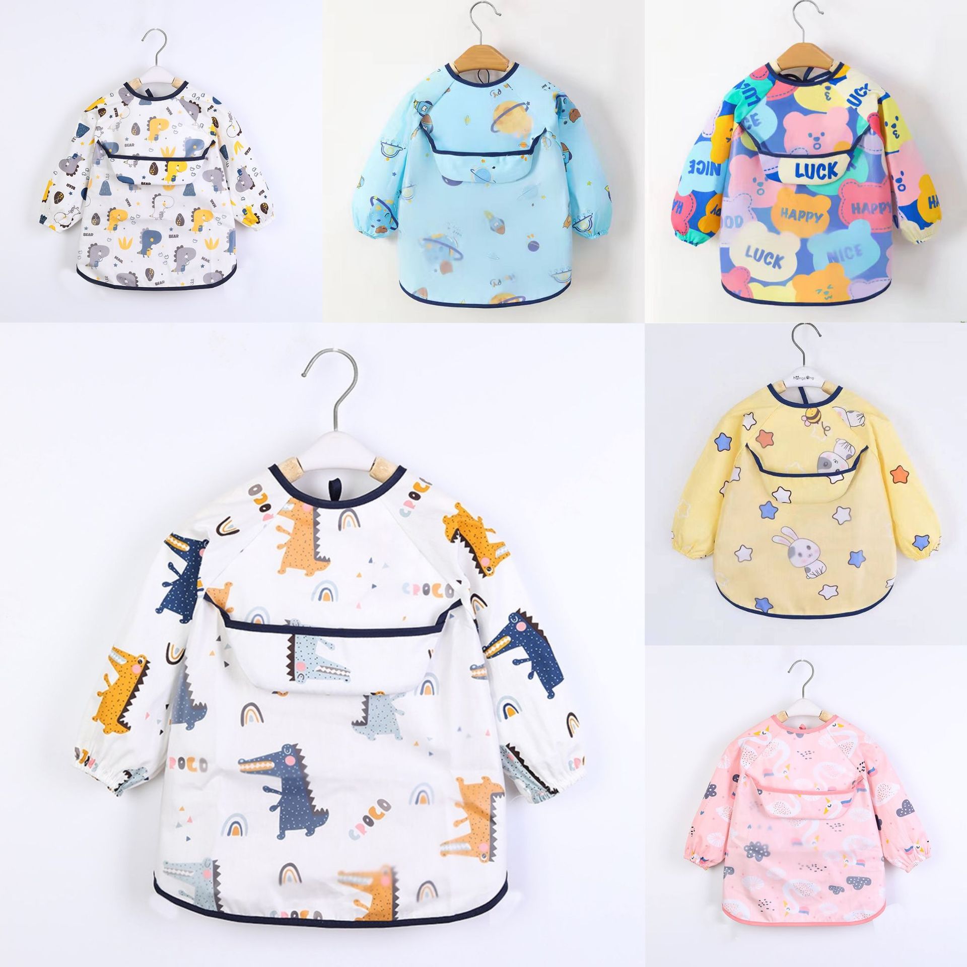 Children’s Overalls Spring and Summer Pure Cotton Class A Baby’s Food Bag Waterproof Anti-Dirty Baby Apron Long Sleeve 1-3 Years Old Food Bib