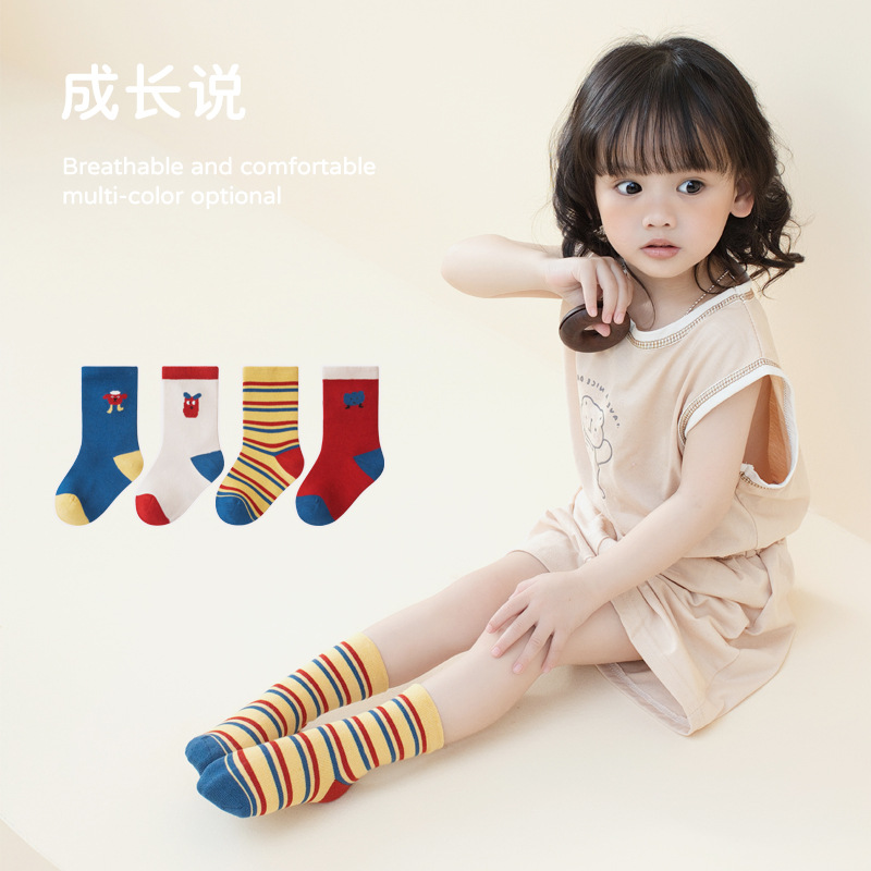 Children’s socks 2024 spring new cute cartoon boneless loose mouth mid-calf baby socks combed cotton mid-calf socks