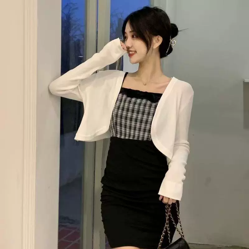 Spring suit Women’s 2024 New Fashion plus size Wear Sunscreen Chiffon Shirt with Sling dress Two-piece Set