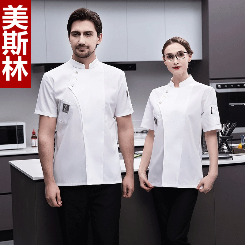 Japanese chef clothes summer clothes half sleeve thin women’s cotton breathable rear kitchen chef work clothes men’s large size plus size