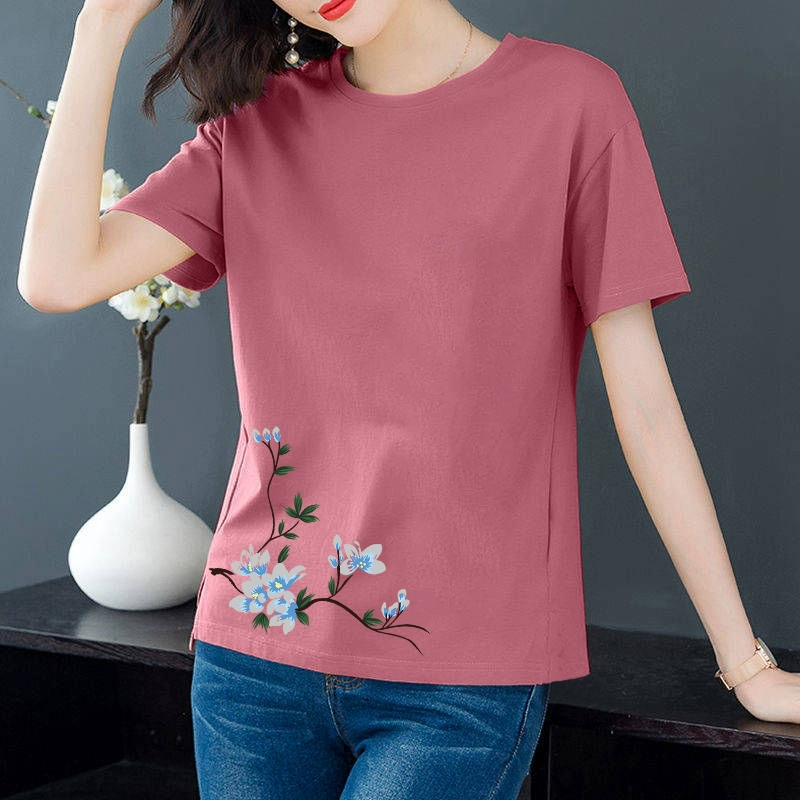 Literary and artistic Middle -aged mother pretending to be reduced age short -sleeved T -shirt