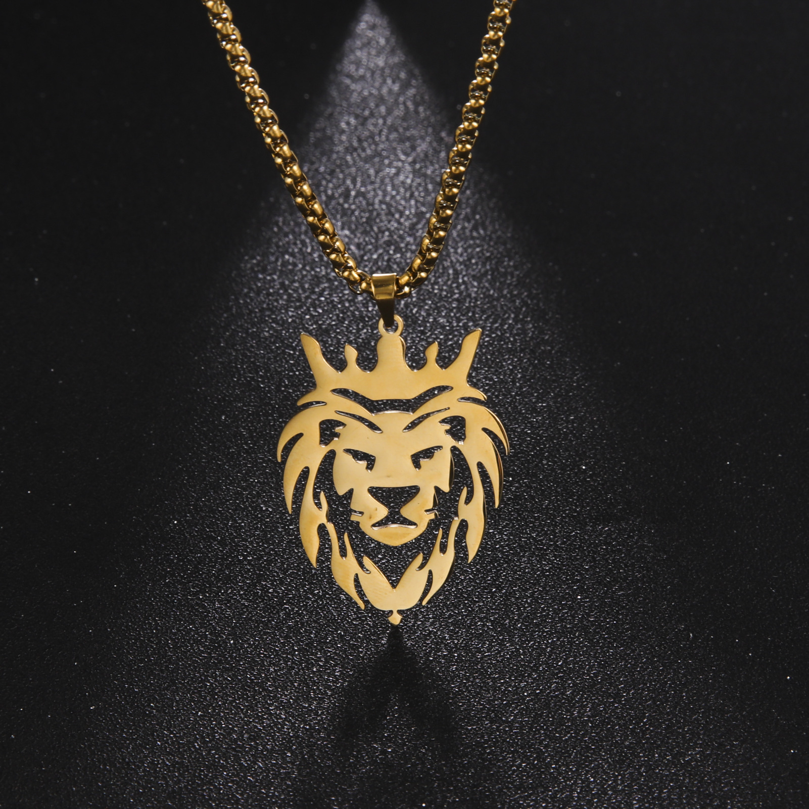 Cross-border hot selling European and American style fashion design Golden domineering hollow lion head pendant necklace