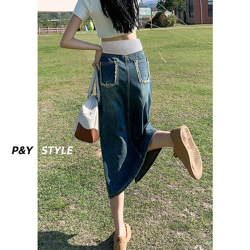 Pregnant women’s Denim skirt summer frayed outer wear loose casual A- line split skirt