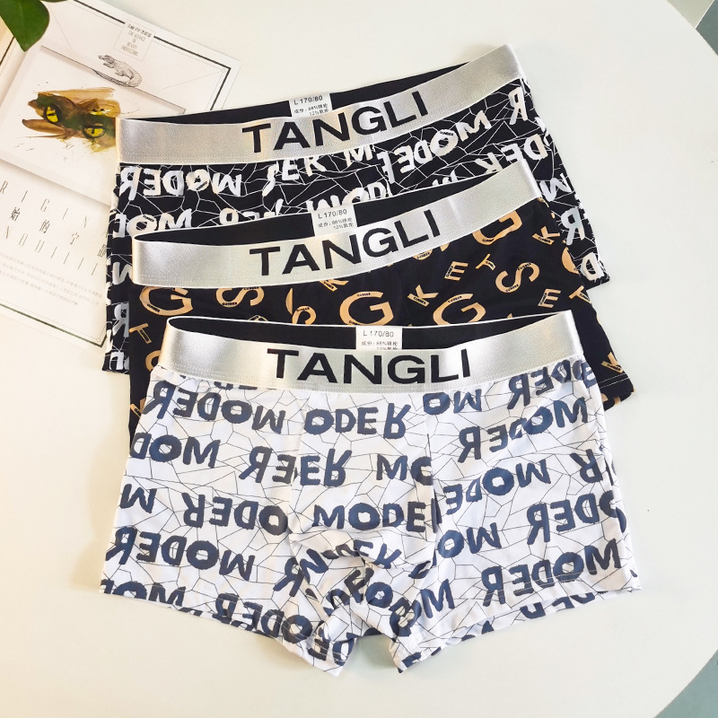 Summer Ice Underwear Men’s Ice Silk Boxer Underwear Ultra-thin Breathable Fashion Printed Trendy Comfortable Boxer Shorts for Men