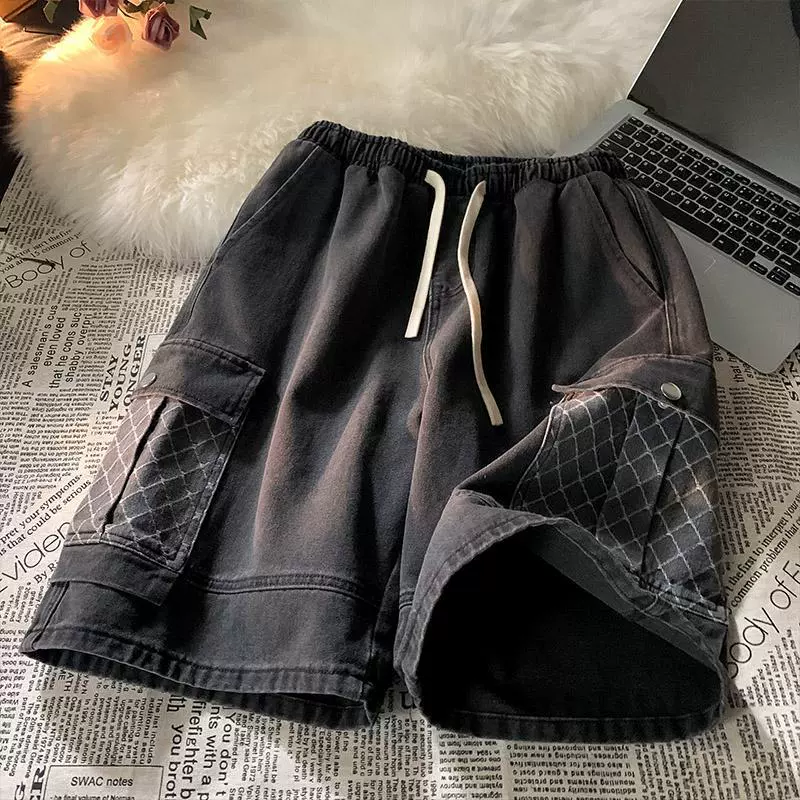 Summer Hong Kong style retro denim casual trousers overalls