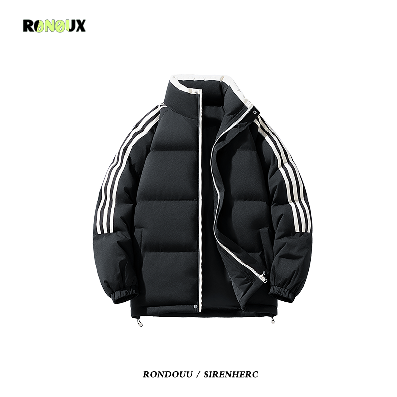 American retro three-stripe cotton coat for men and women in winter thickened oversize trendy couple’s bread coat cotton coat
