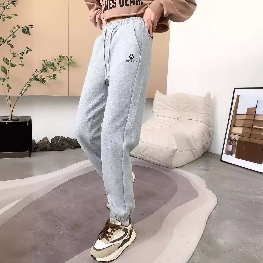 Cheap running volume Chinese cotton composite milk silk LOGO fashion casual sports loose comfortable ankle-tied sweatpants for women