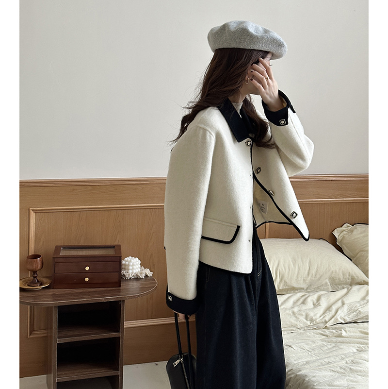 “Peninsula love letter” handmade double-sided cashmere coat women’s short contrast color French high-grade top 2024