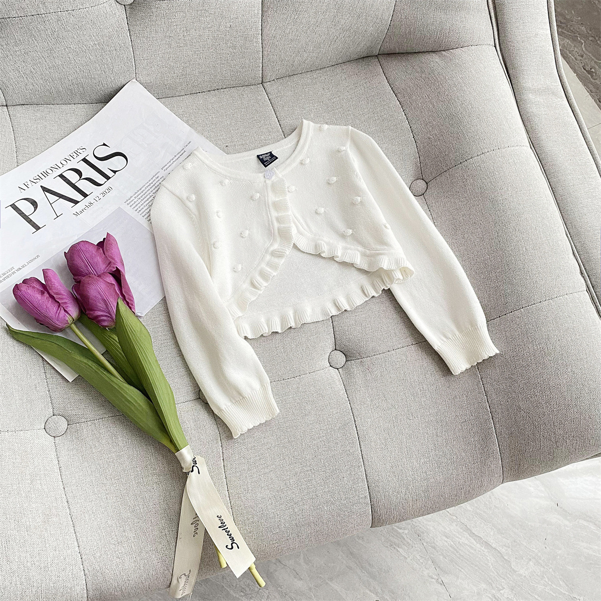 New spring and summer cute girls’ baby cotton thin children’s long-sleeved shawl girls’ knitted sweater