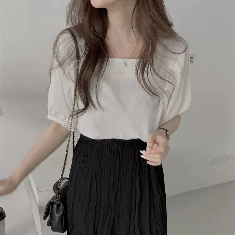 Summer Korean style loose chic short-sleeved square collar shirt