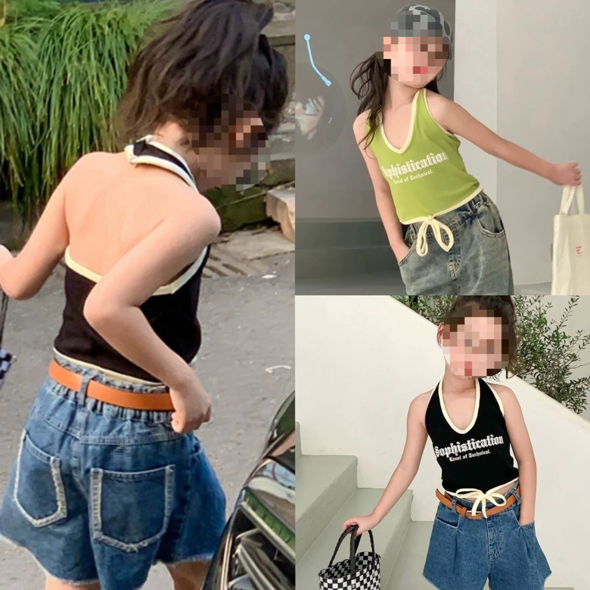 Girls’ Retro Backless Letter Sling Small Vest Summer New Fashionable Children’s Outer Wear Top Fashionable 0120A038