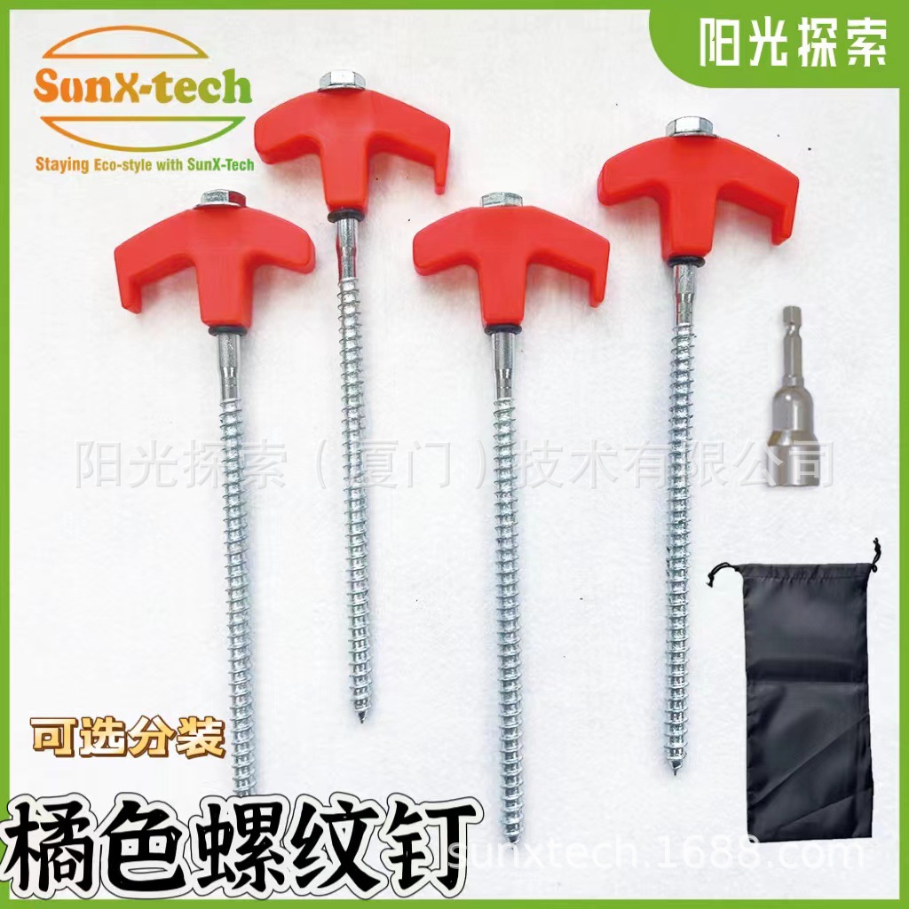 Orange hexagonal spiral fluorescent nail camping carbon steel nail 13mm head thread nail camping canopy accessories factory outlet