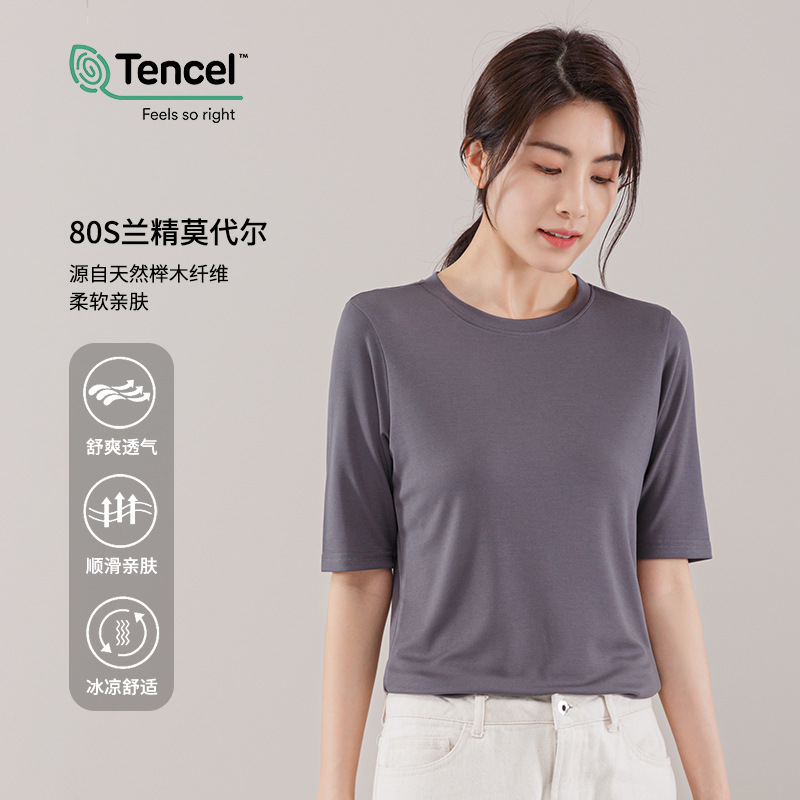 New Round Neck Middle Sleeve Base Shirt 80 Modal Top Knitted Half Sleeve Solid Color High Luxury Women’s T-shirt