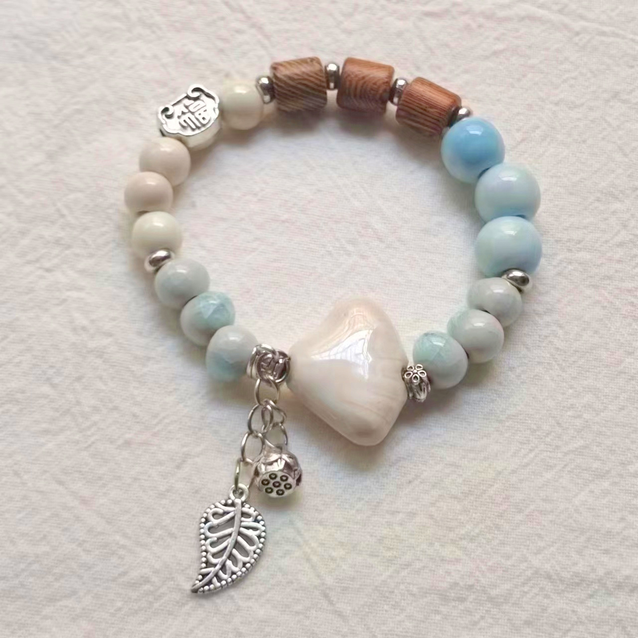 New Chinese Style Ceramic Bracelet Jingdezhen Jewelry Wholesale Ethnic Style Shell Bracelet Hand Woven Kiln Change Bracelet