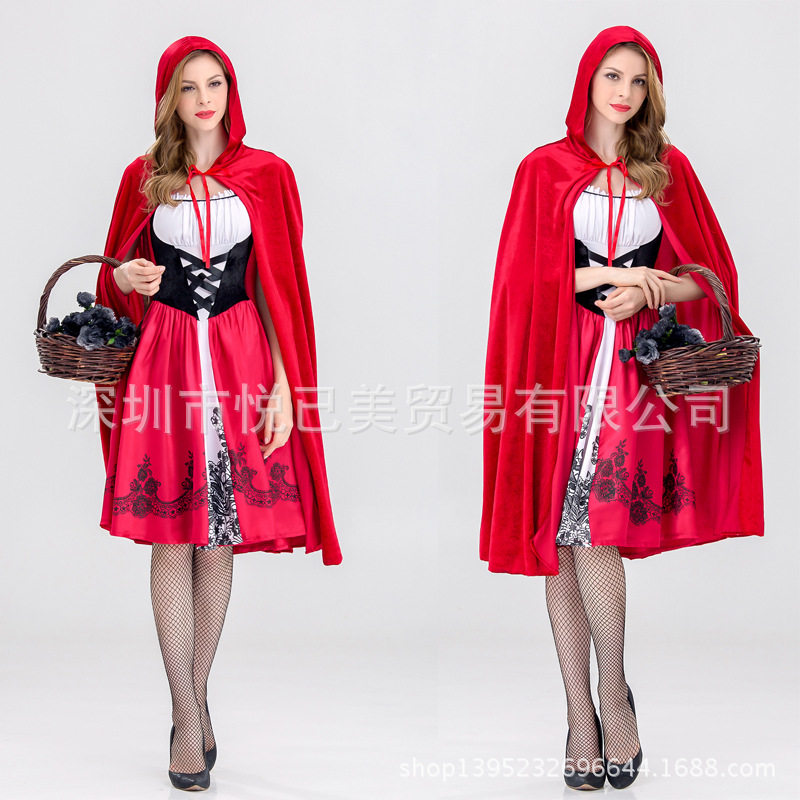 New Size Little Red Riding Hood Halloween Dress Adult cosplay Party Little Red Riding Hood Night Shop Prom Queen Dress