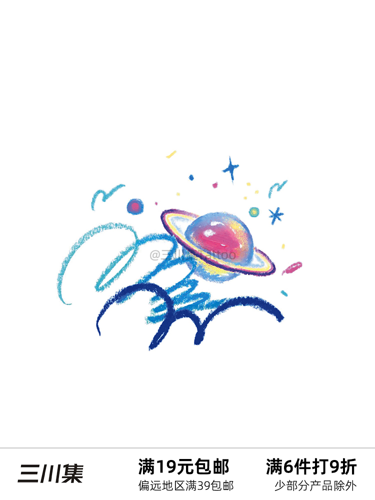 Sanchuanji tattoo Happy Planet Color Tattoo Sticker Girly Pink Hand-painted Feeling Ins Waterproof Long-lasting Women