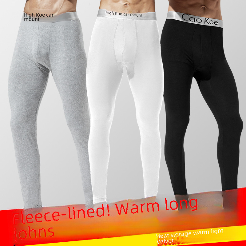 2023 new fleece-lined warm pants men’s plus size Long Johns thin skinny pants trendy autumn and winter youth leggings