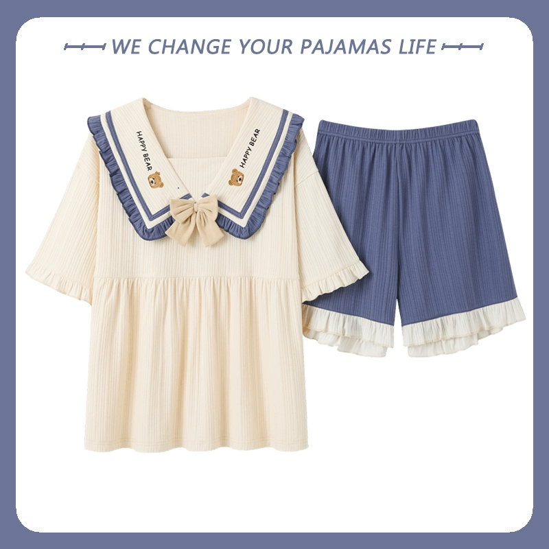 Arctic velvet pajamas female summer cute short -sleeved shorts large size net red wind wearing cute summer set home service