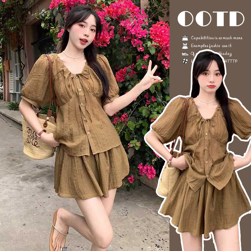 ~ maternity summer two-piece western style outerwear retro age-reducing short-sleeved top shorts suit
