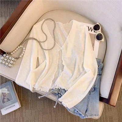 2024 sunscreen knit cardigan female thin-panear design summer shawl with a strap short jacket