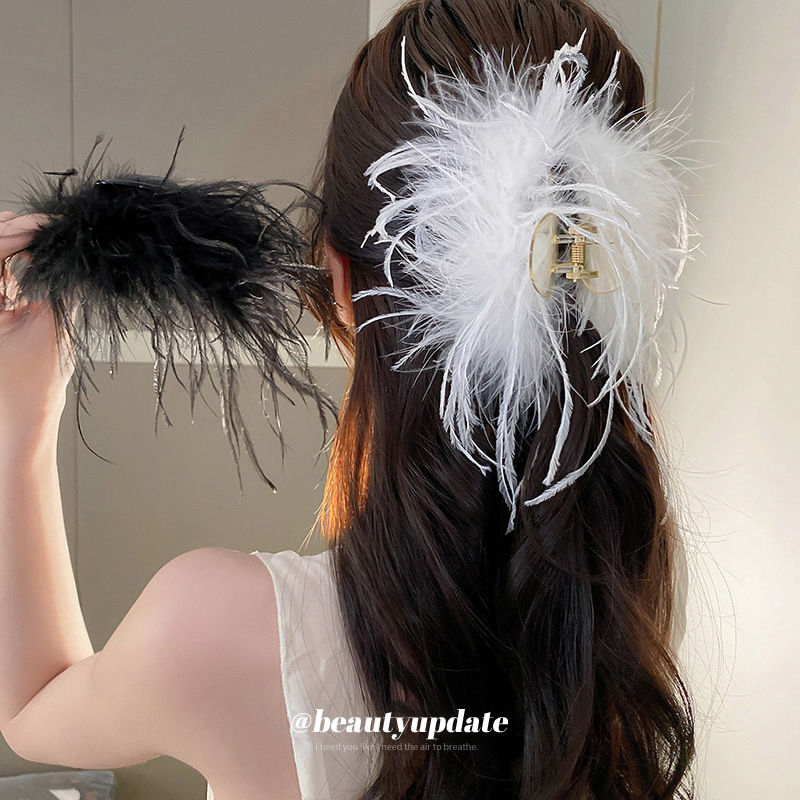 Autumn and Winter Super Fairy Ostrich Hair Clip Niche Design High-grade Sense ins Grab Clip Back Head Hair Shark Clip Hair Accessories
