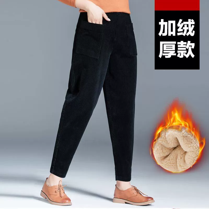 Special offer thickened elastic waist solid color corduroy pants