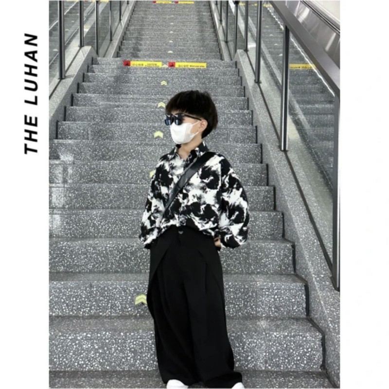 Boys’ Shirt 2024 Spring New Western Style Korean Style Big Kids Ink Painting Shirt Trendy Top