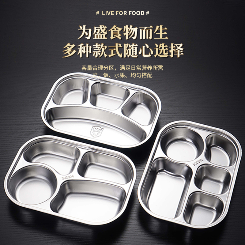 304 Stainless Steel Rounded Rounded Partition Meal Children Students Adult Girls Separated Canteen Meal Plate Fast Food Plate Box