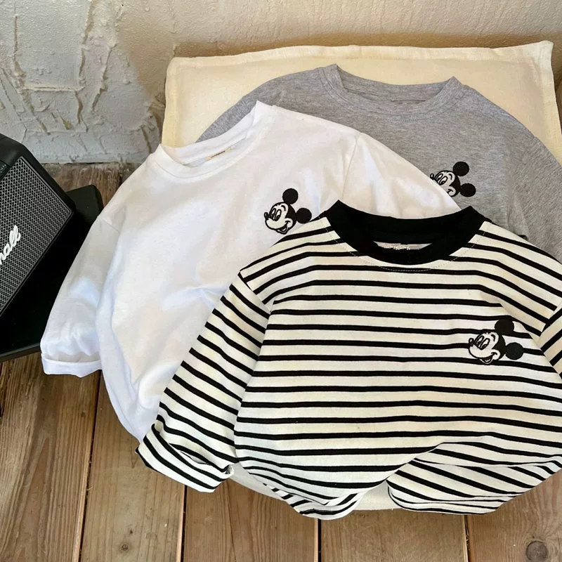 Cartoon spring and autumn clothes for boys and girls striped long-sleeved T-shirt