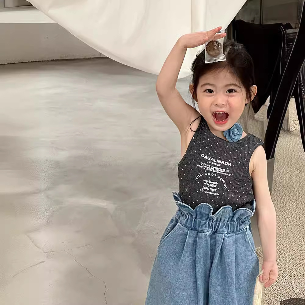Children’s Vest 2024 Summer New Korean Girls’ Letter Vest Children’s Cute Vest Top
