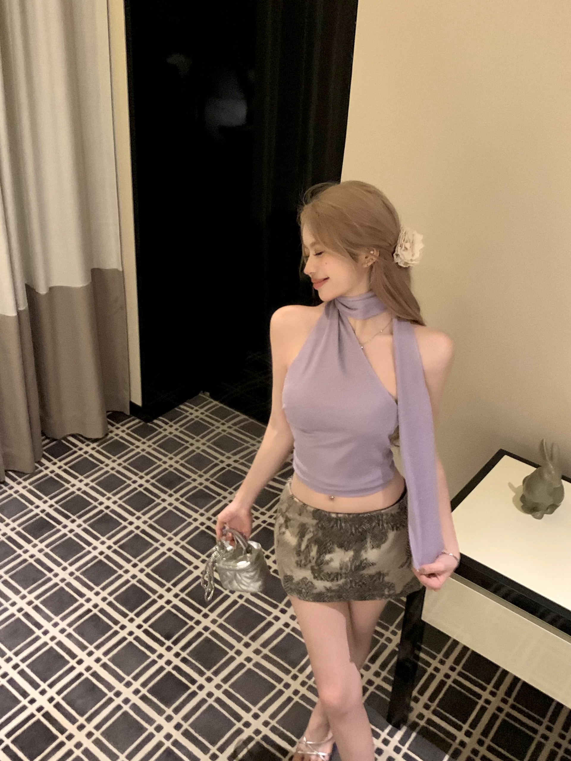 Purple oblique shoulder summer slim design sense hanging neck strap