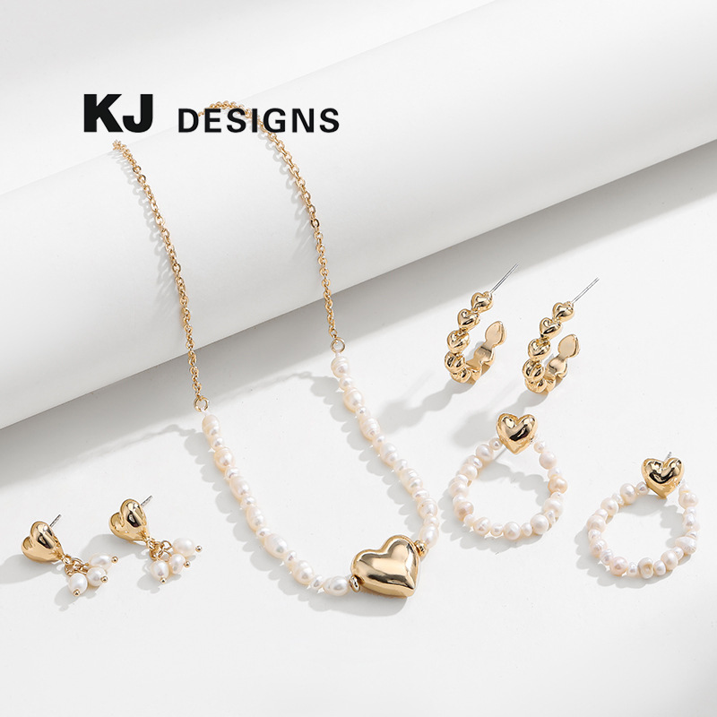Kenjie freshwater pearl lovely peach necklace earrings suit women’s cross-border spring and summer fashion all-matching LOVE BOMB Women